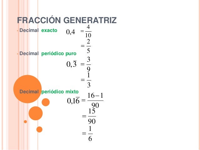 Este período puede constar de diferentes partes. Relaciones entre porcentaje, fracción y decimal. La fracción generatriz de un número decimal es la fracción irreductible que da como resultado dicho número decimal.